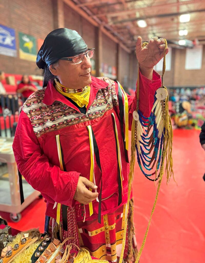 Time – volunteer at the table, a workshop, or your talent to make needed items. We often have material to make regalia items, but not all of the time. We would love to include our community regalia makers in this way!